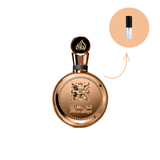 O Fakhar Gold Extrait – Lattafa abre com notas frutadas e especiadas de maçã, bergamota e pimenta, que revelam frescor vibrante e calor envolvente. No coração, lavanda, canela e notas florais trazem um equilíbrio refinado entre intensidade e suavidade. O fundo amadeirado de baunilha, âmbar e madeiras nobres garante fixação prolongada, profundidade e sensualidade irresistível.